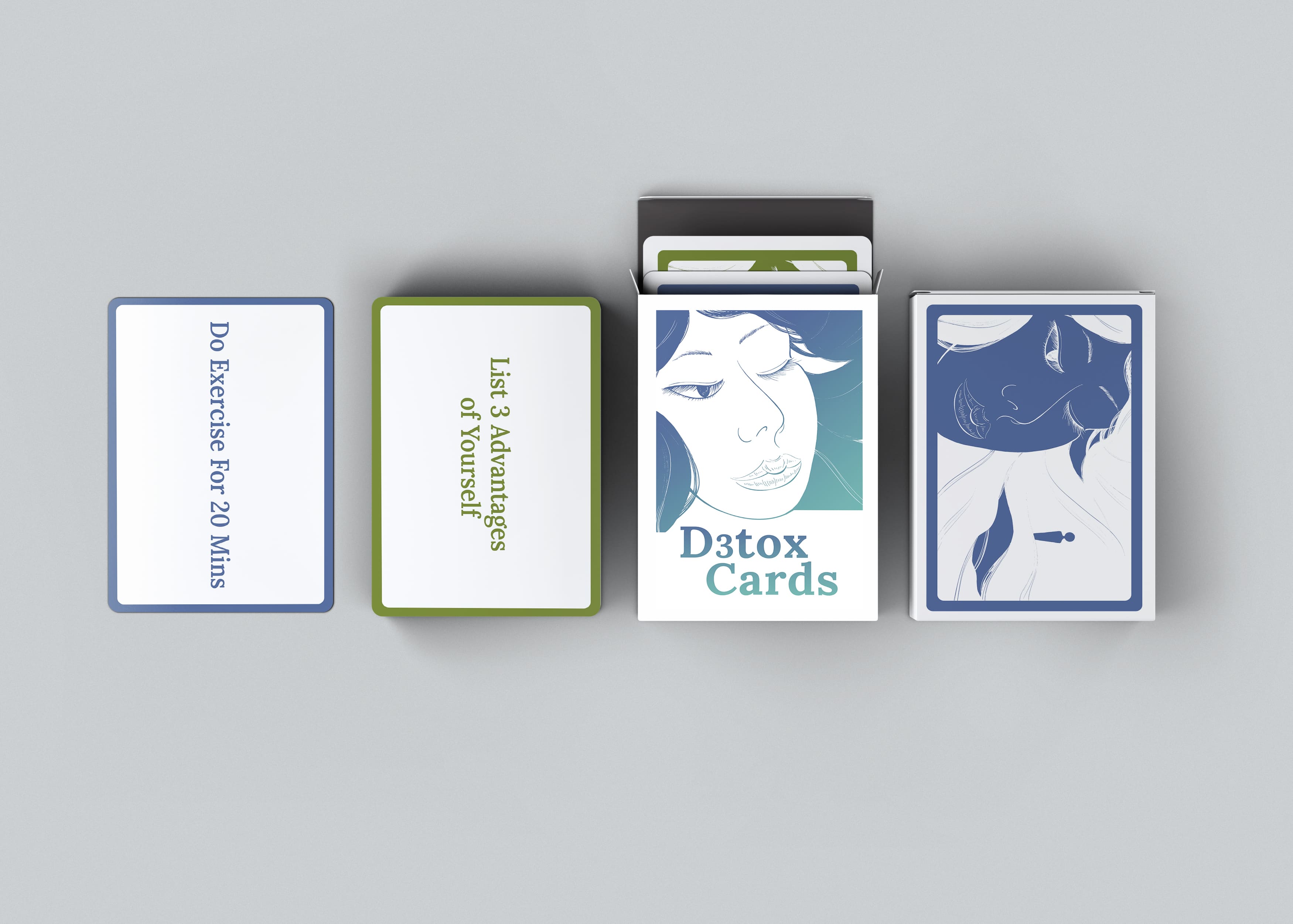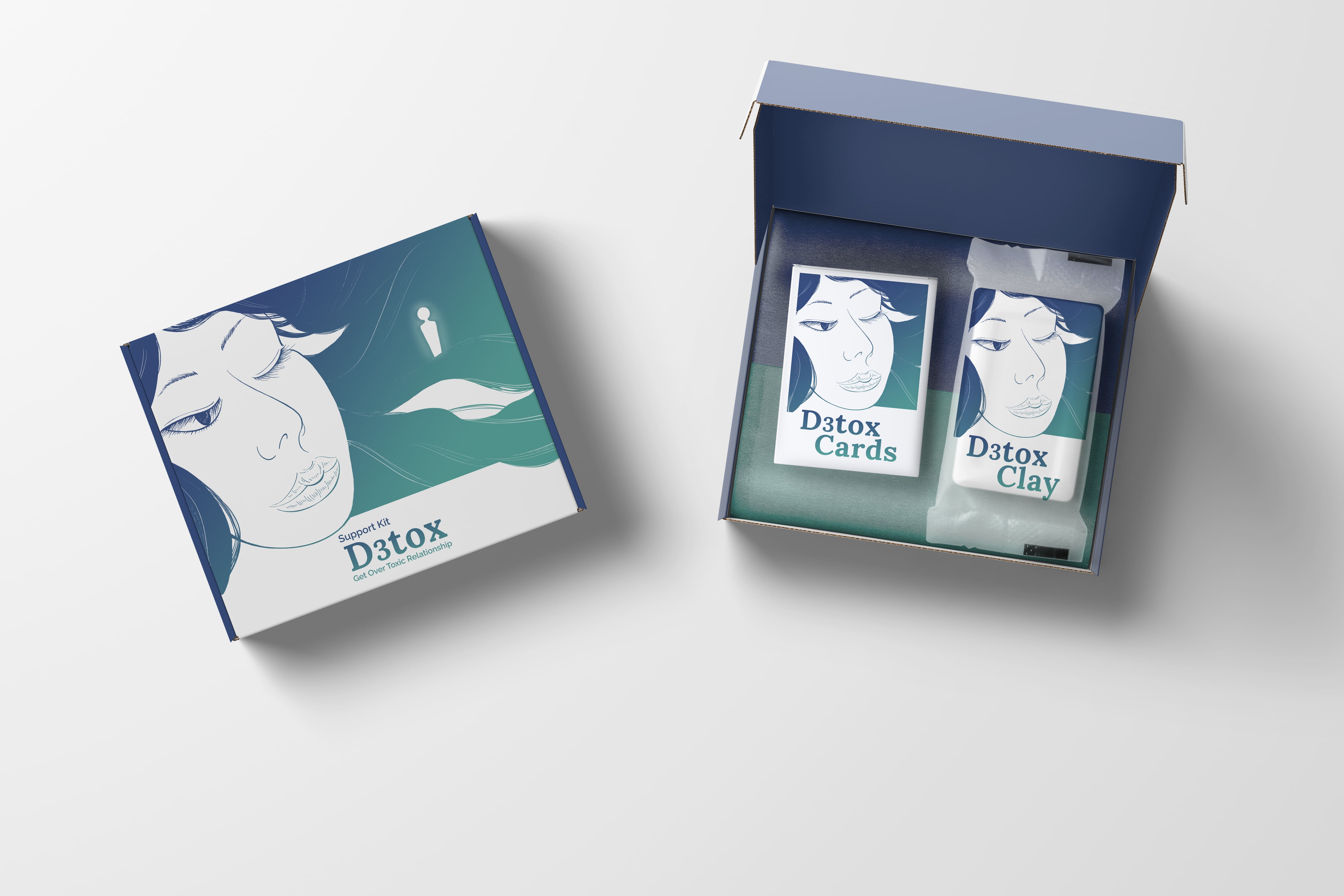Create a support kit—— D3tox that is a combination of healing tools that covers all aspects of the healing journey, including the air dry clay, and card game.