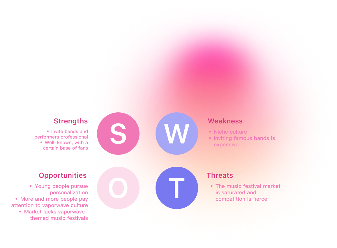 Through a series of researches, in order to make this festival better meet the needs of the market, I did a SWOT analysis.
